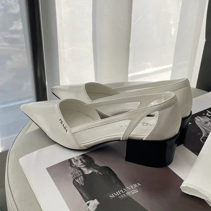 Early spring new pointed toe thick heeled single shoes 1025030404