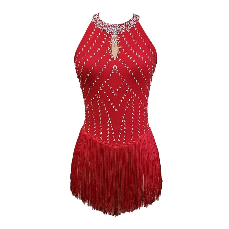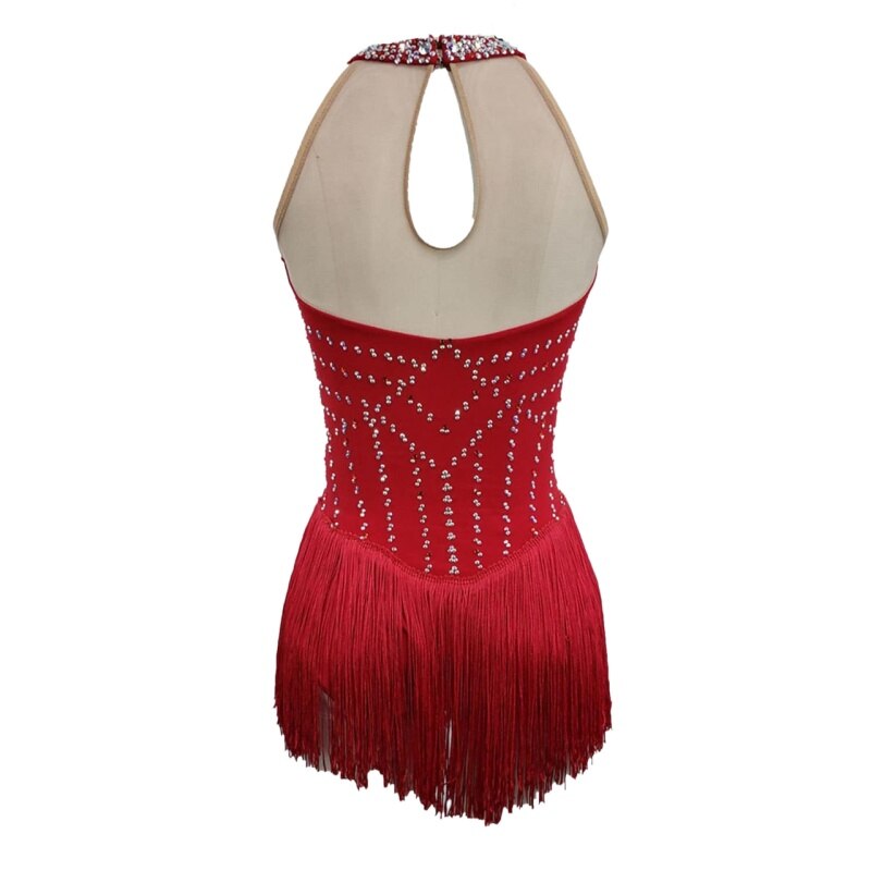 ❤ Features:This LIUHUO skating dress is a vibrant and dynamic piece. In a striking red color, it immediately catches the eye. The halter - style neckline is adorned with sparkling rhinestones, which also form intricate patterns that run down the bodice, adding a touch of glamour.
