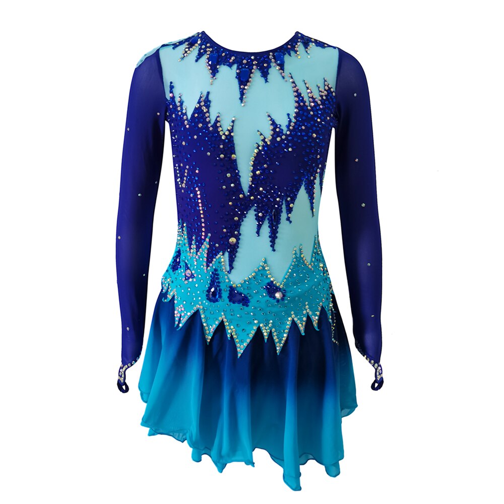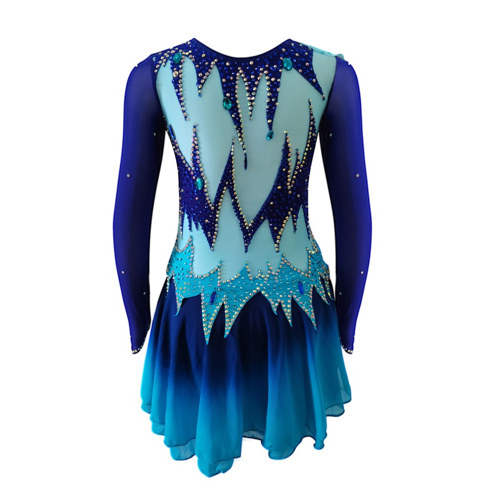 ❤ Features:This LIUHUO figure - skating dress is a captivating piece. It features a stunning color scheme transitioning from deep blue to light blue. The long - sleeved design has sleeves in a rich, deep blue.