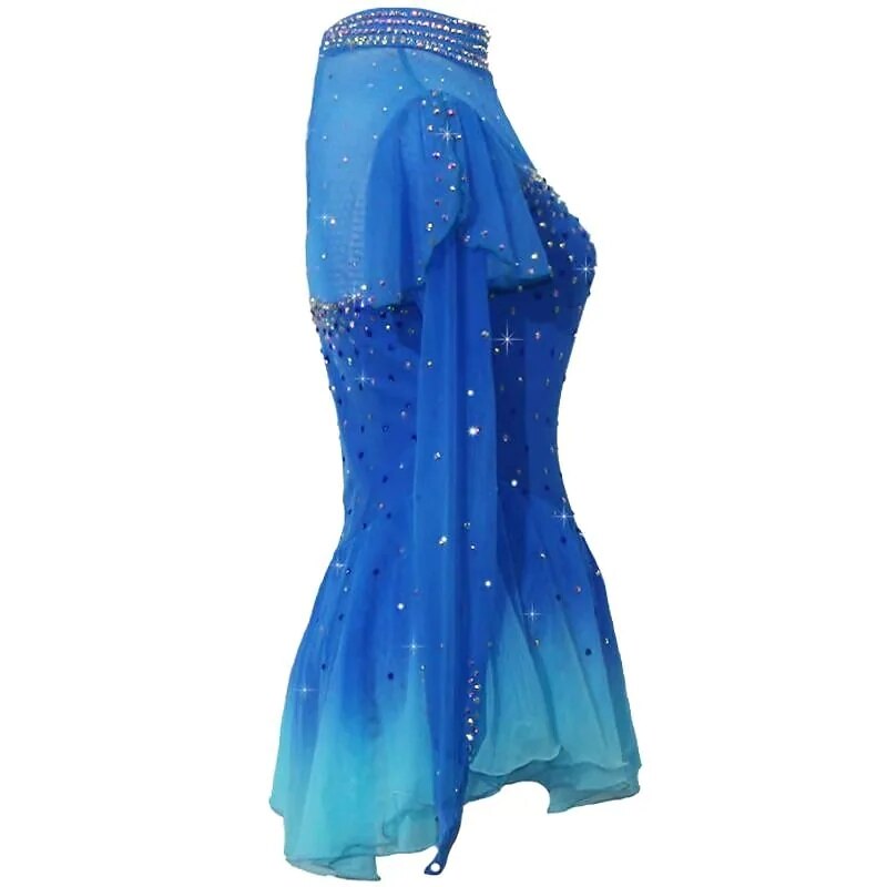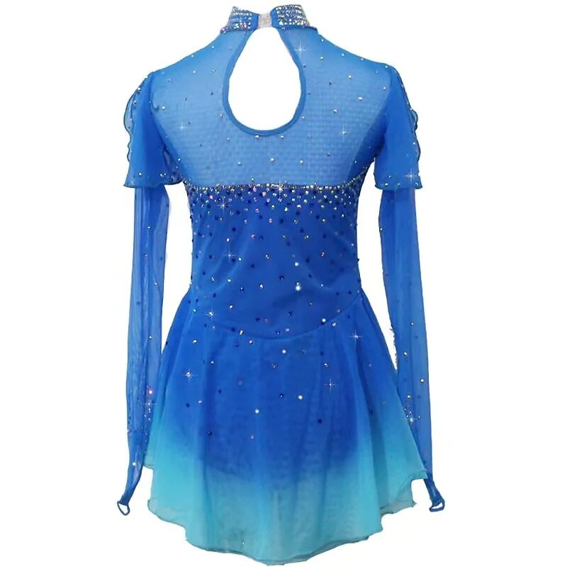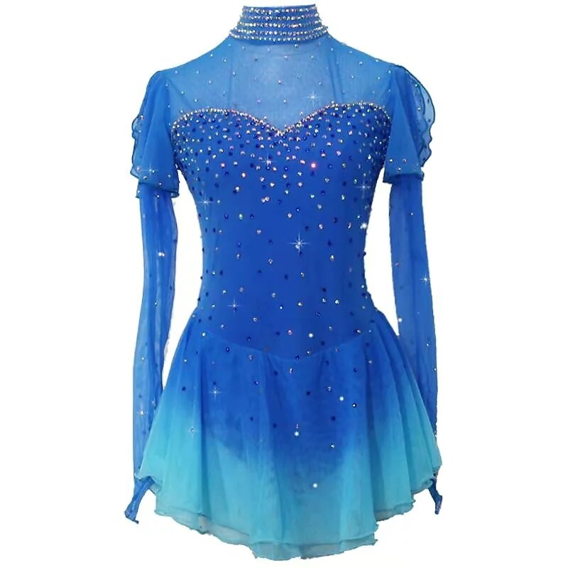 ❤ Features:This LIUHUO skating dress is a captivating piece. It features a high - neck design with a sheer overlay on the upper part, giving it an ethereal look. The long sleeves are adorned with ruffled details, adding a touch of elegance. The dress is predominantly blue, transitioning from a deeper shade at the top to a lighter one towards the hem, creating a beautiful gradient effect.