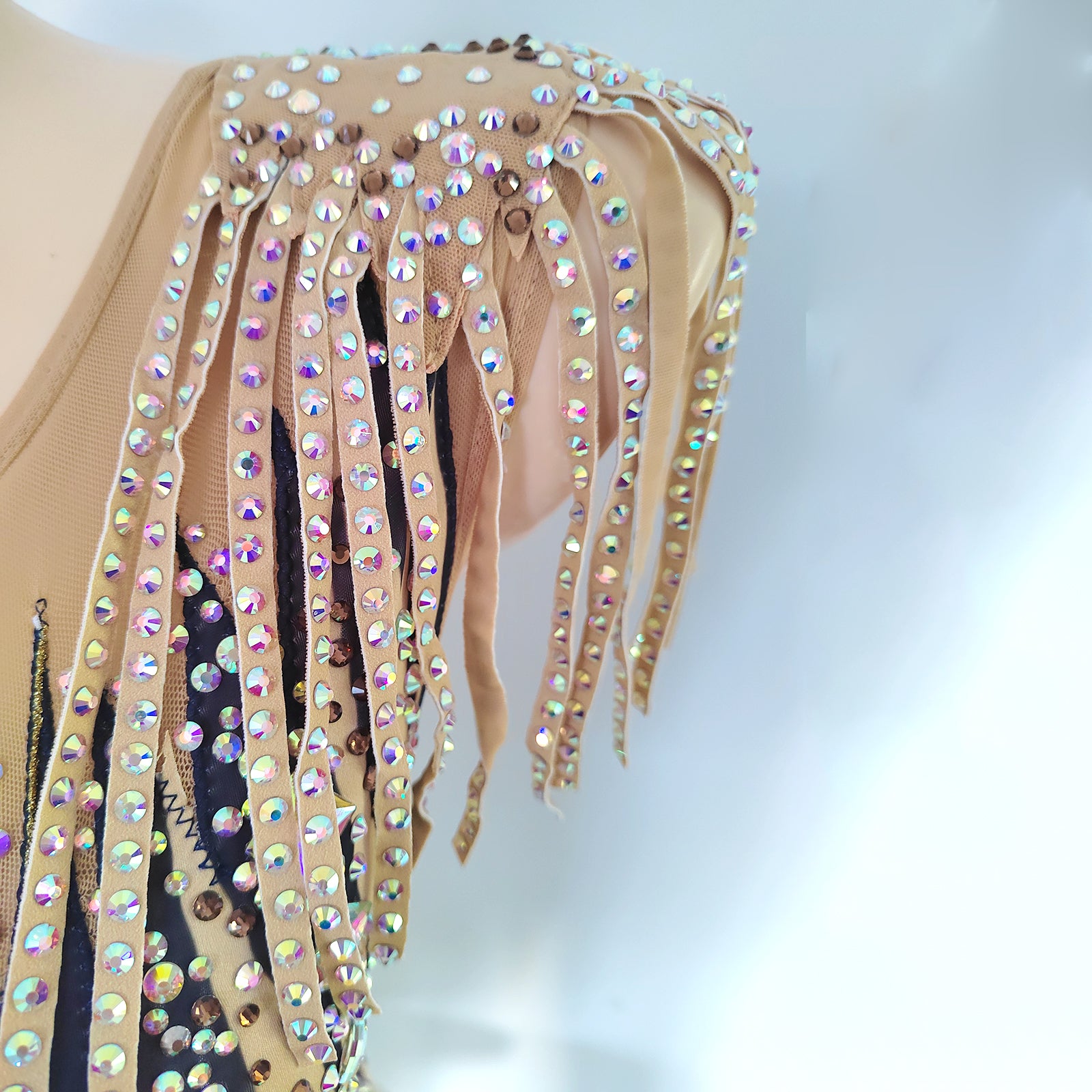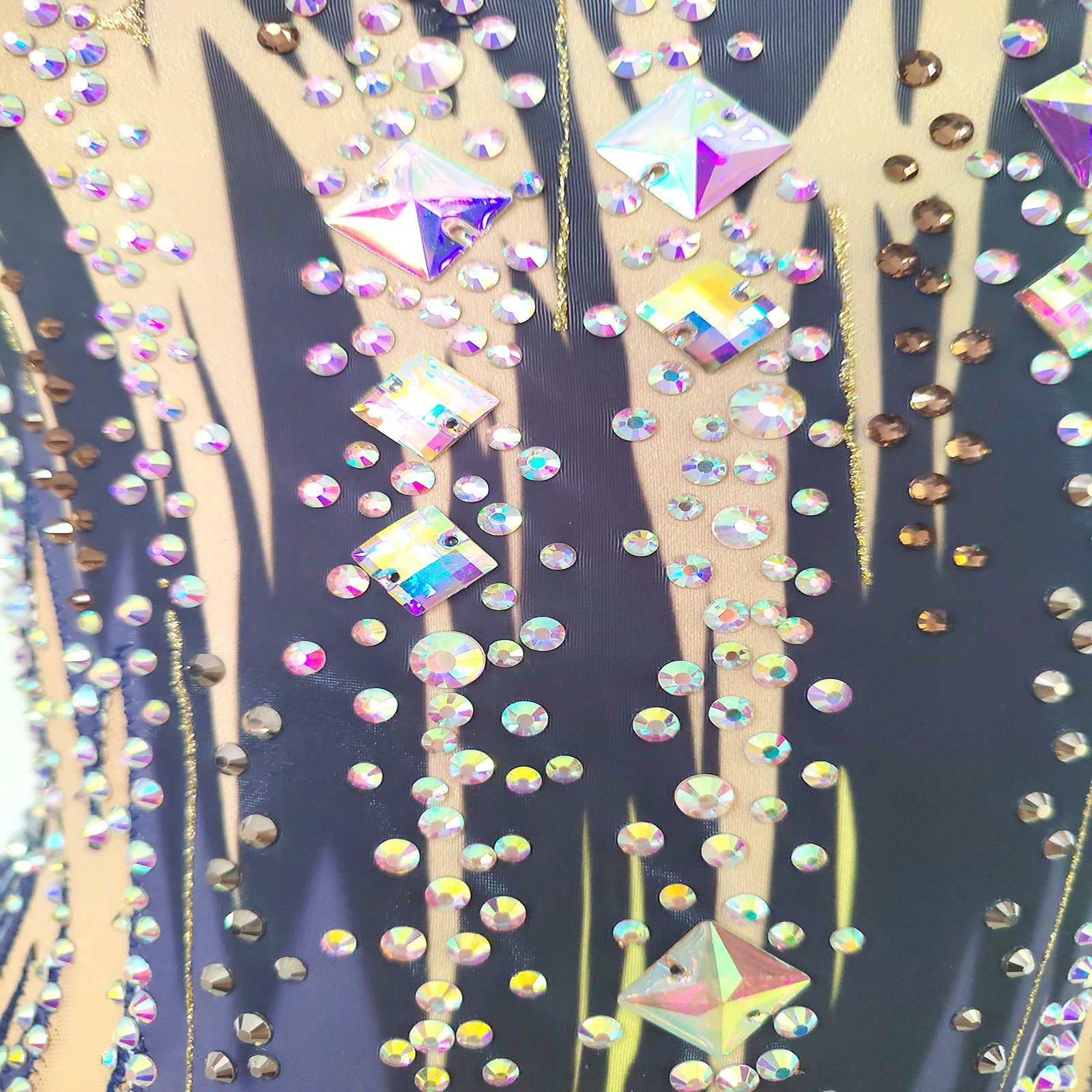The dress was made by high quality spandex,with plenty of diamonds and  gem of acrylic. Mostly we sell the dress with crystals of  the Middle East.