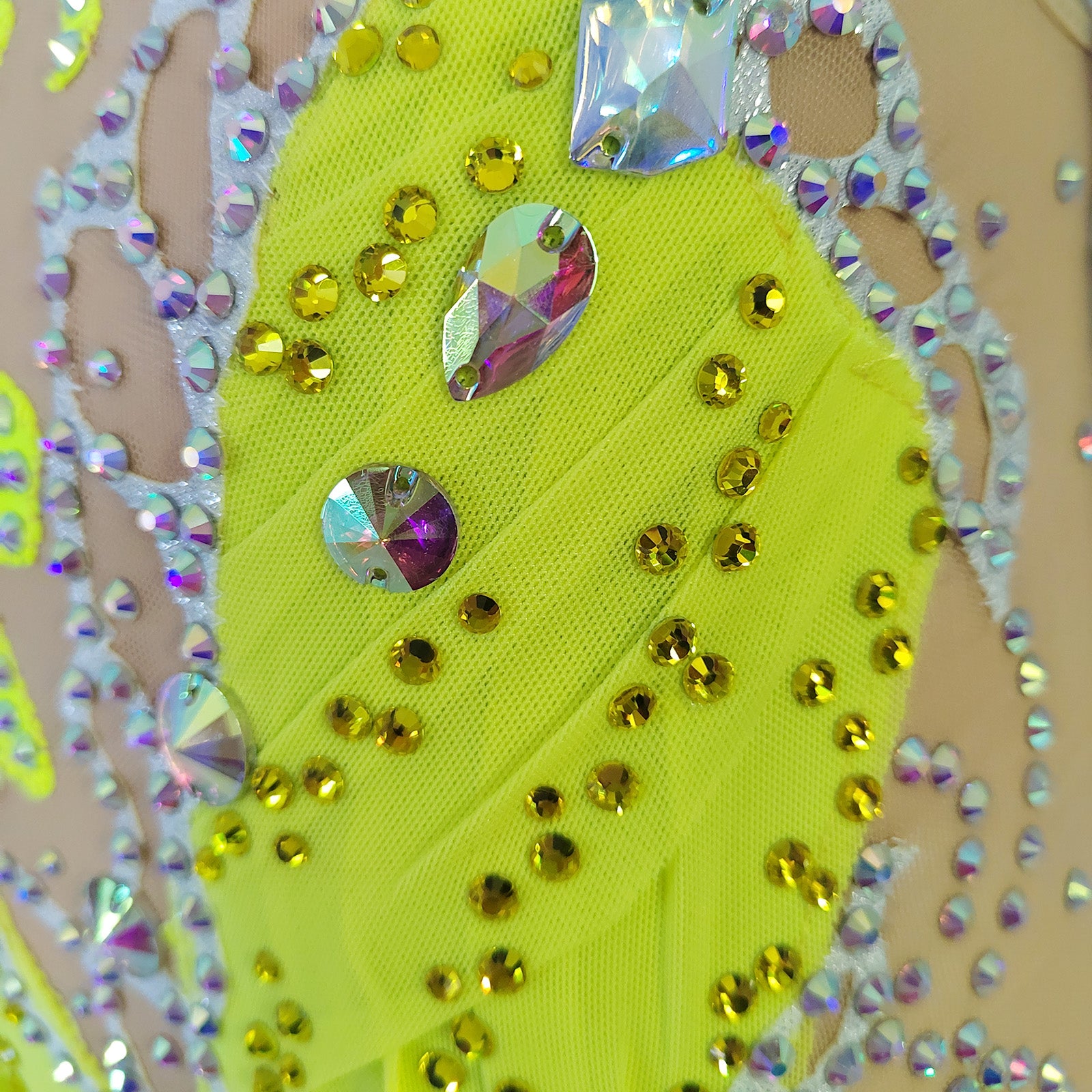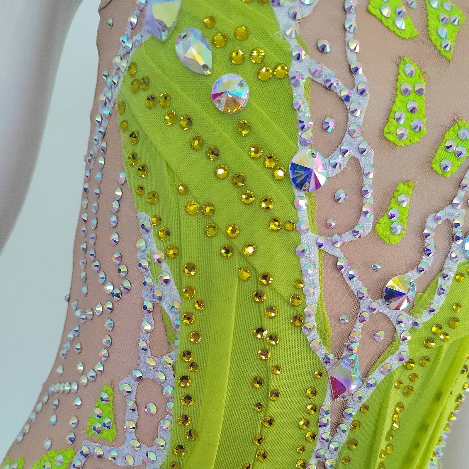 The dress was made by high quality spandex,with plenty of diamonds and  gem of acrylic. Mostly we sell the dress with crystals of  the Middle East.