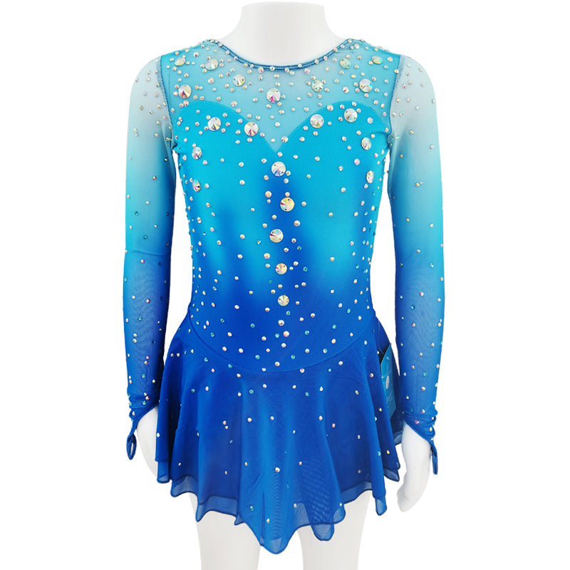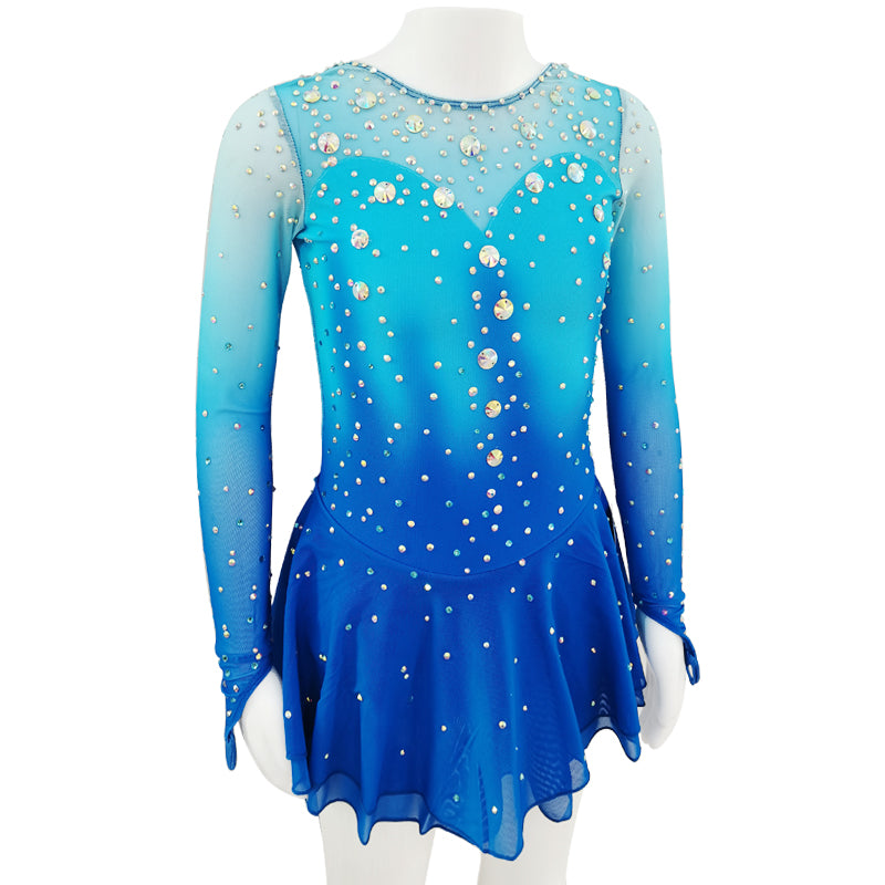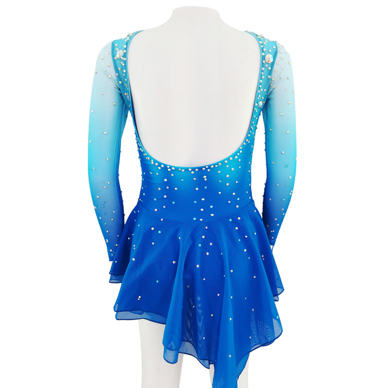 The fabric is mainly made of the newest pattern and quality elastic velour, high elasticity spandex, as well as the precise binding skill and the decoration diamond or the lace pattern. The fabric chosen is warmth kept, color fastness, sweat absorbed and color bright; brand new custom made ice skating dress with matching hair scrunchie included. All dresses have the underpants are attached.