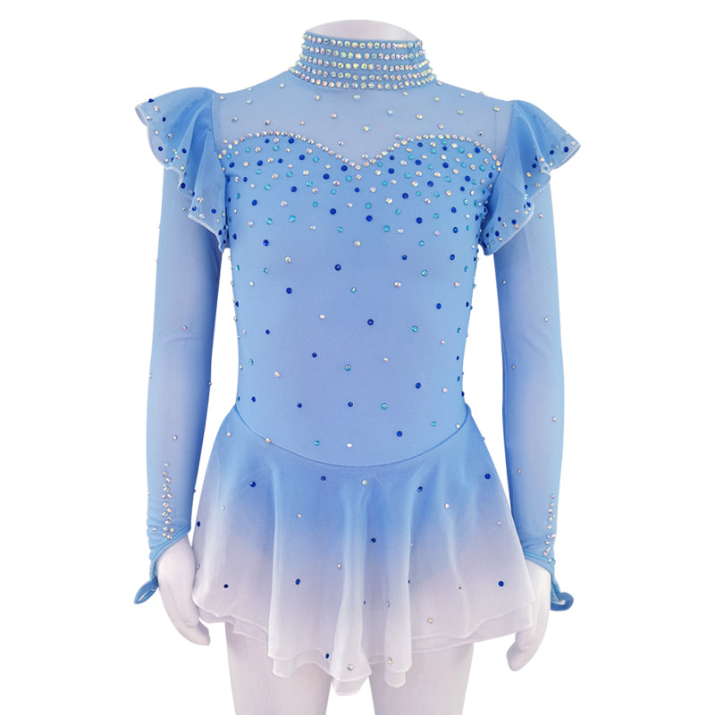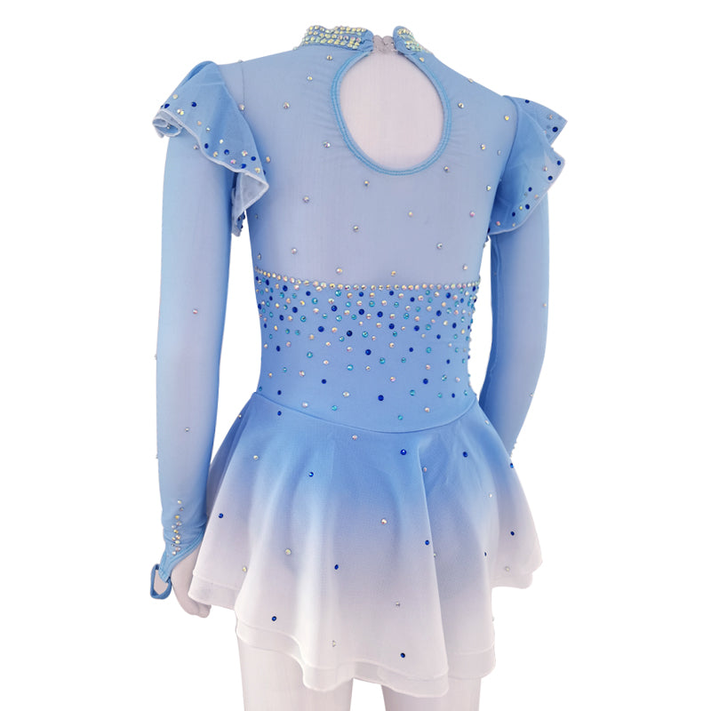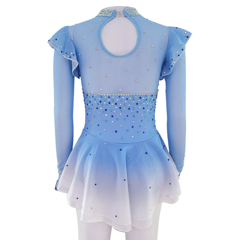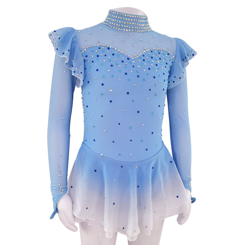 ❤ Features: The dream choice for ice dancers - this LIUHUO figure - skating costume perfectly weaves elegance and sparkle together. The pure blue - white gradient is like the fusion of a glacier and a clear sky, adding an ethereal and poetic touch to the ice. Exquisitely - set rhinestones encircle the high collar, like stars around the neck, whispering of understated luxury.