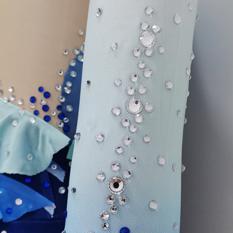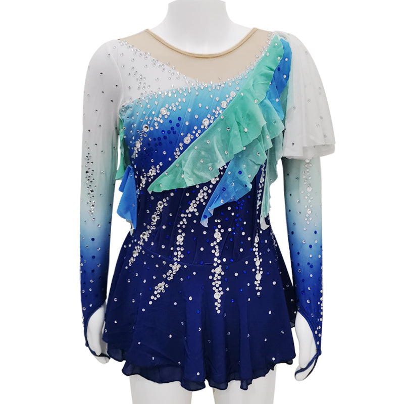 The fabric is mainly made of the newest pattern and quality elastic velour, high elasticity spandex, as well as the precise binding skill and the decoration diamond or the lace pattern. The fabric chosen is warmth kept, color fastness, sweat absorbed and color bright; brand new custom made ice skating dress with matching hair scrunchie included. All dresses have the underpants are attached.