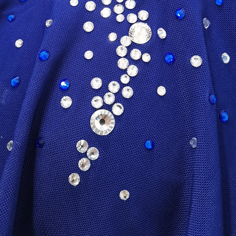 The dress was made by high quality spandex,with plenty of diamonds and  gem of acrylic. Mostly we sell the dress with crystals of  the Middle East.