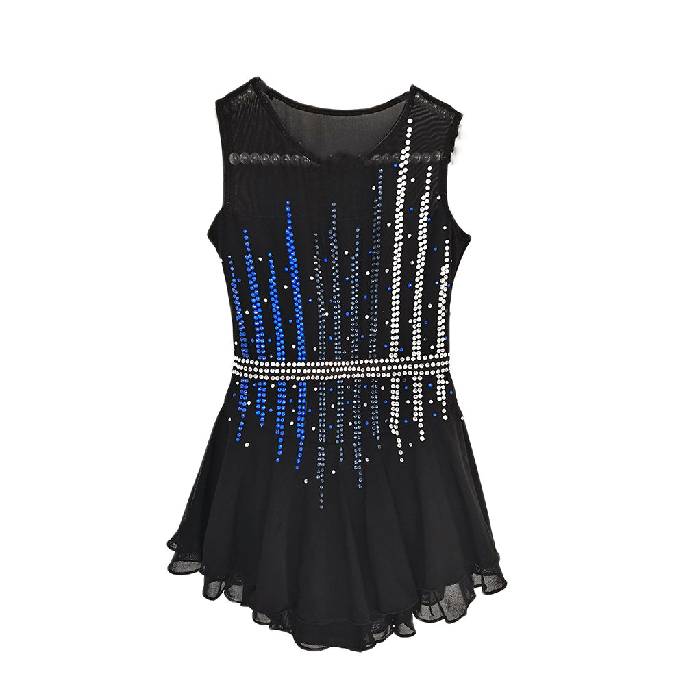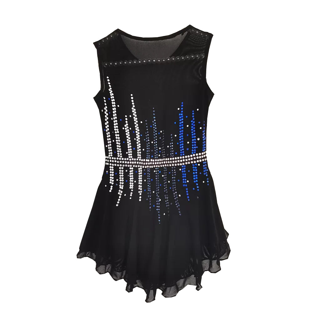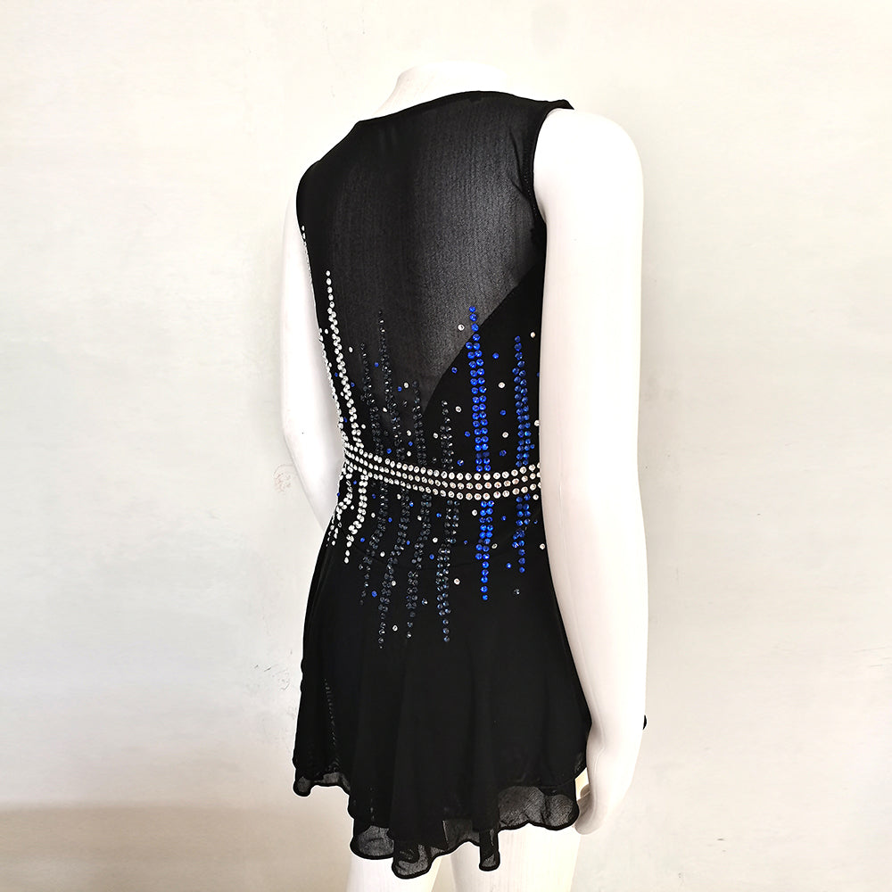 ❤ Features:This LIUHUO figure - skating dress exudes a sleek and modern charm. It features a sleeveless design, with a round neckline that offers a classic look. The base color is a timeless black, providing an elegant backdrop.