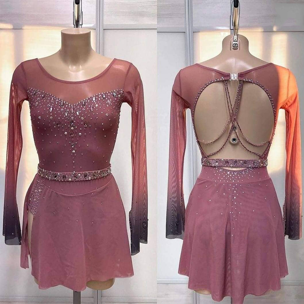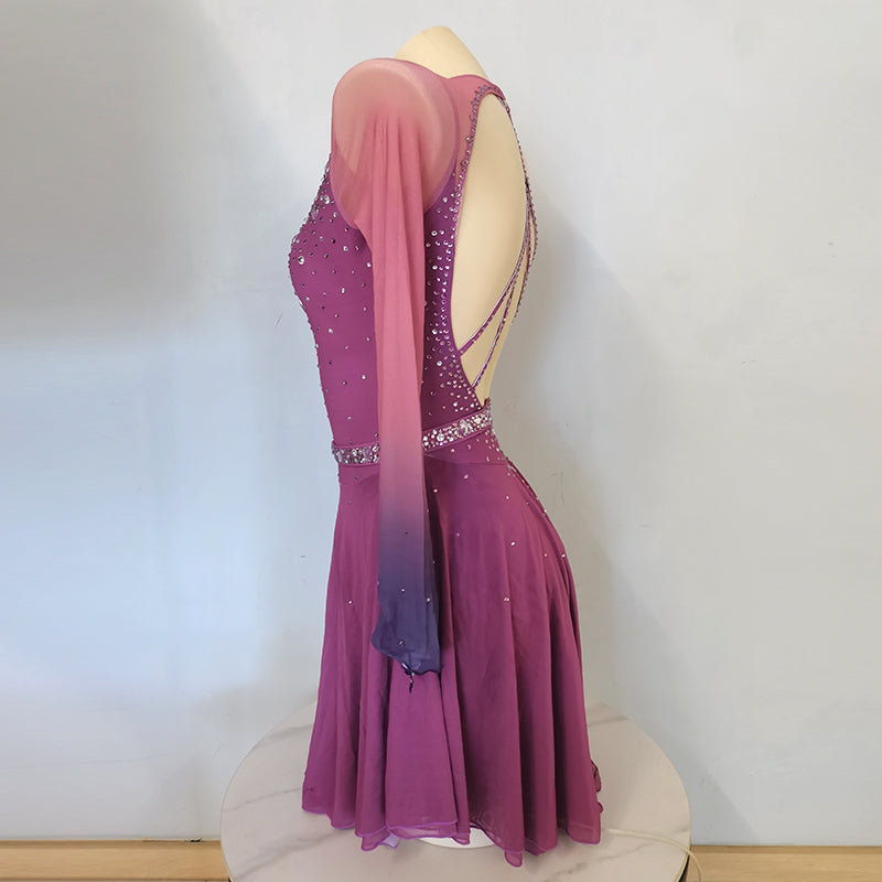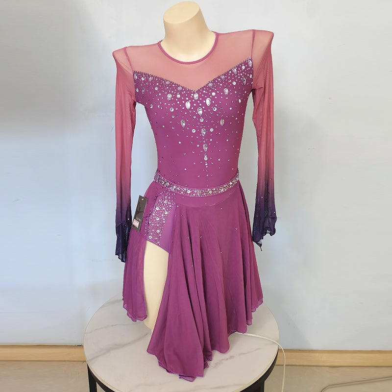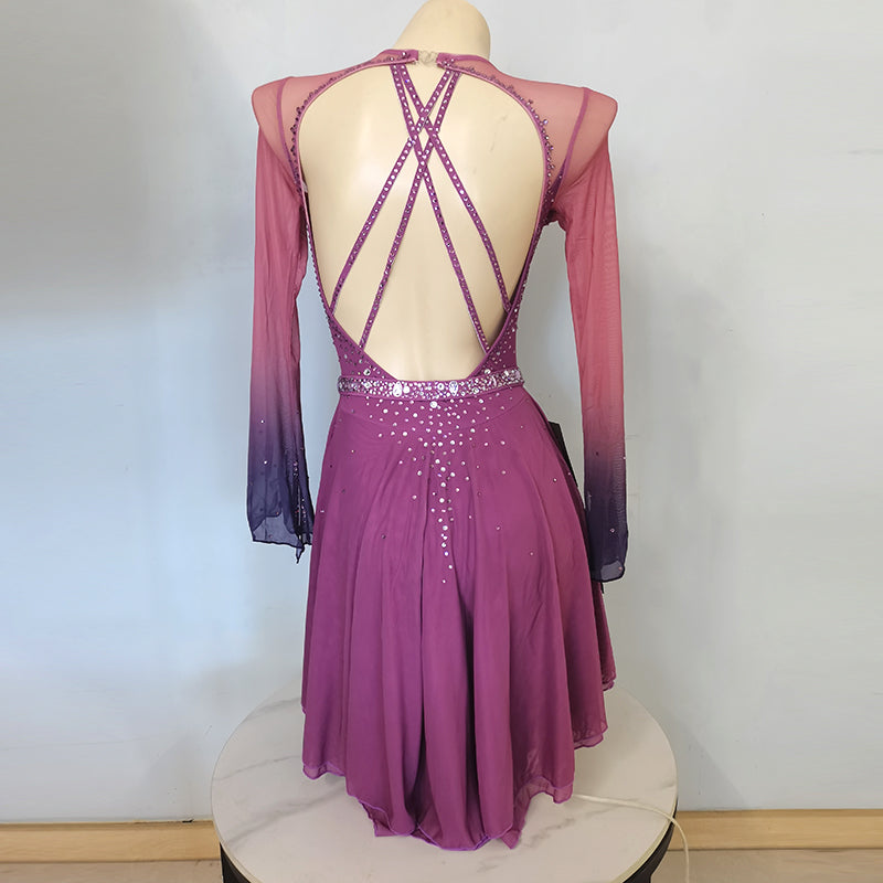 ❤ Features:This skating dress by LIUHUO features a long - sleeved design with a gradient color from a deeper shade at the sleeves to a lighter one on the body. The bodice is embellished with numerous sparkling rhinestones, creating an eye - catching effect. It has a round neck at the front.