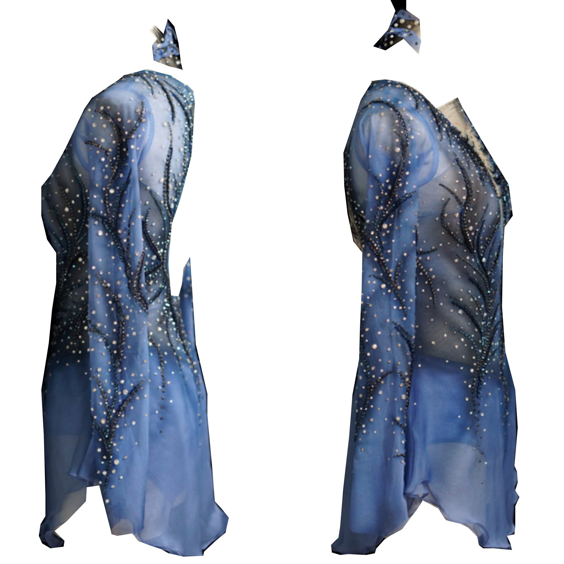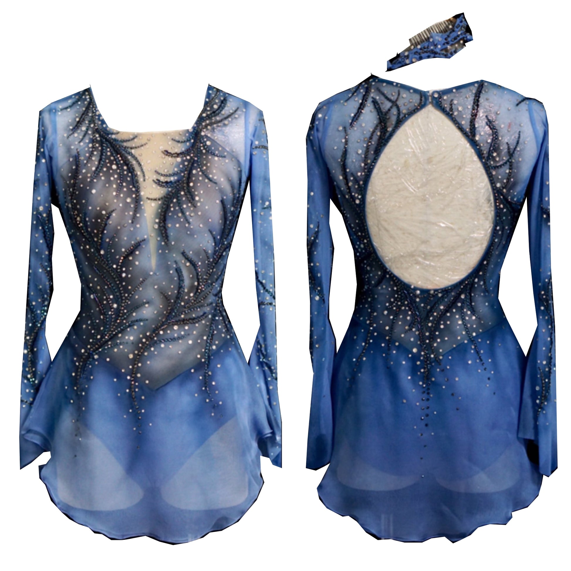 ❤ Features:This LIUHUO figure skating dress is a symphony of elegance and allure. Bathed in a soft blue gradient, it evokes a sense of tranquility and grace. The long - sleeved sheer fabric provides a delicate and ethereal quality. The front and back are adorned with an intricate pattern of sparkling rhinestones, meticulously arranged to mimic flowing vines or branches, adding a touch of nature - inspired artistry. The back features a large, oval - shaped cut - out, framed by the rhinestone embellishments, which not only enhances the visual appeal but also allows for greater freedom of movement. With its unique design elements, this dress is perfect for skaters looking to make a memorable impression on the ice.