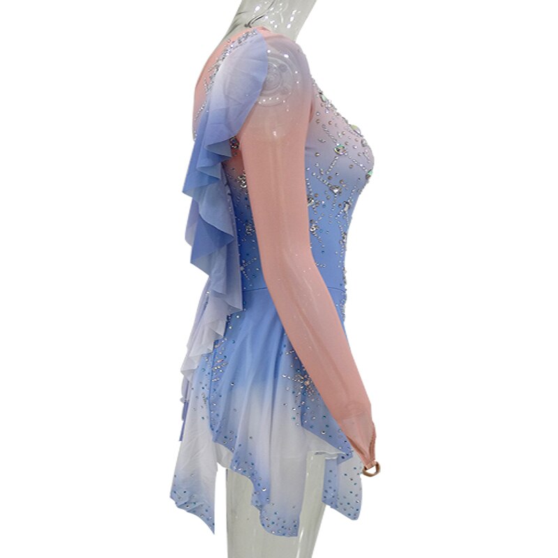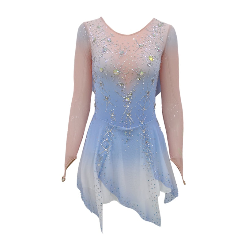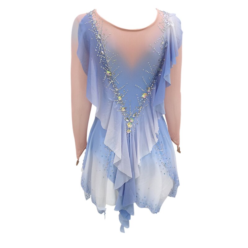 The fabric is mainly made of the newest pattern and quality elastic velour, high elasticity spandex, as well as the precise binding skill and the decoration diamond or the lace pattern. The fabric chosen is warmth kept, color fastness, sweat absorbed and color bright; brand new custom made ice skating dress with matching hair scrunchie included. All dresses have the underpants are attached.