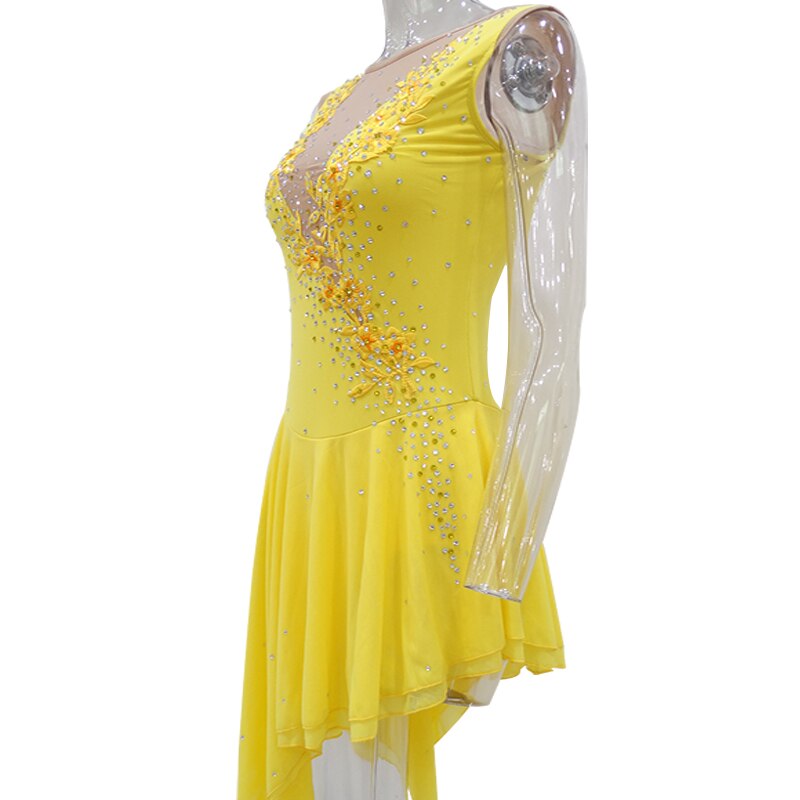 The fabric is mainly made of the newest pattern and quality elastic velour, high elasticity spandex, as well as the precise binding skill and the decoration diamond or the lace pattern. The fabric chosen is warmth kept, color fastness, sweat absorbed and color bright; brand new custom made ice skating dress with matching hair scrunchie included. All dresses have the underpants are attached.
