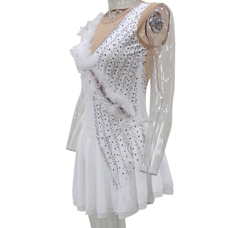 The fabric is mainly made of the newest pattern and quality elastic velour, high elasticity spandex, as well as the precise binding skill and the decoration diamond or the lace pattern. The fabric chosen is warmth kept, color fastness, sweat absorbed and color bright; brand new custom made ice skating dress with matching hair scrunchie included. All dresses have the underpants are attached.