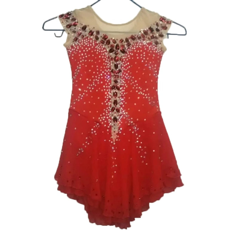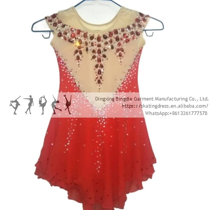 The fabric is mainly made of the newest pattern and quality elastic velour, high elasticity spandex, as well as the precise binding skill and the decoration diamond or the lace pattern. The fabric chosen is warmth kept, color fastness, sweat absorbed and color bright; brand new custom made ice skating dress with matching hair scrunchie included. All dresses have the underpants are attached.