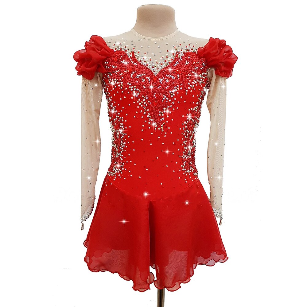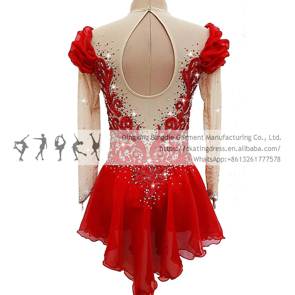 The fabric is mainly made of the newest pattern and quality elastic velour, high elasticity spandex, as well as the precise binding skill and the decoration diamond or the lace pattern. The fabric chosen is warmth kept, color fastness, sweat absorbed and color bright; brand new custom made ice skating dress with matching hair scrunchie included. All dresses have the underpants are attached.