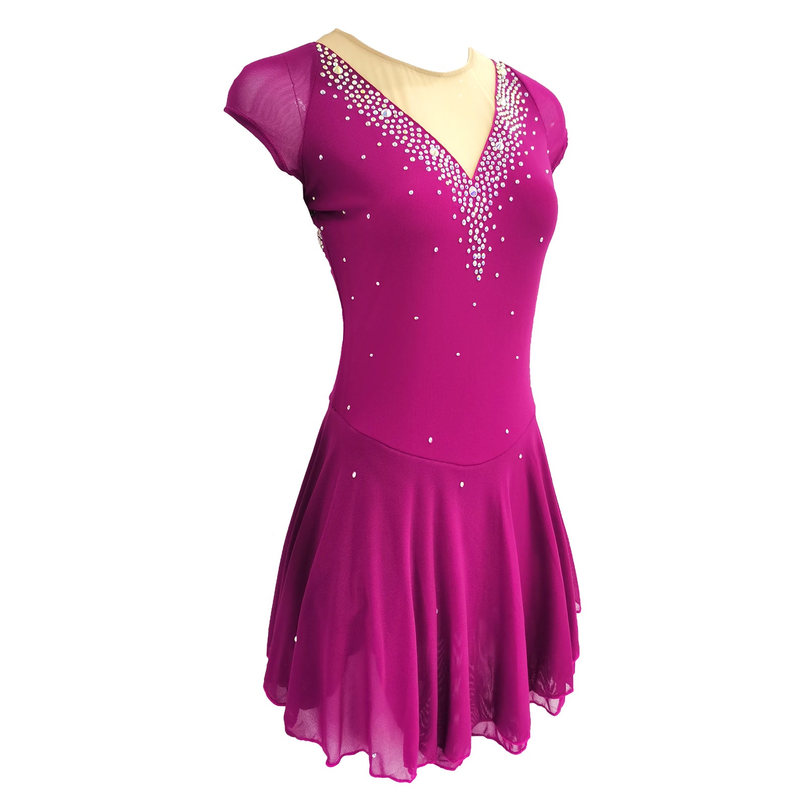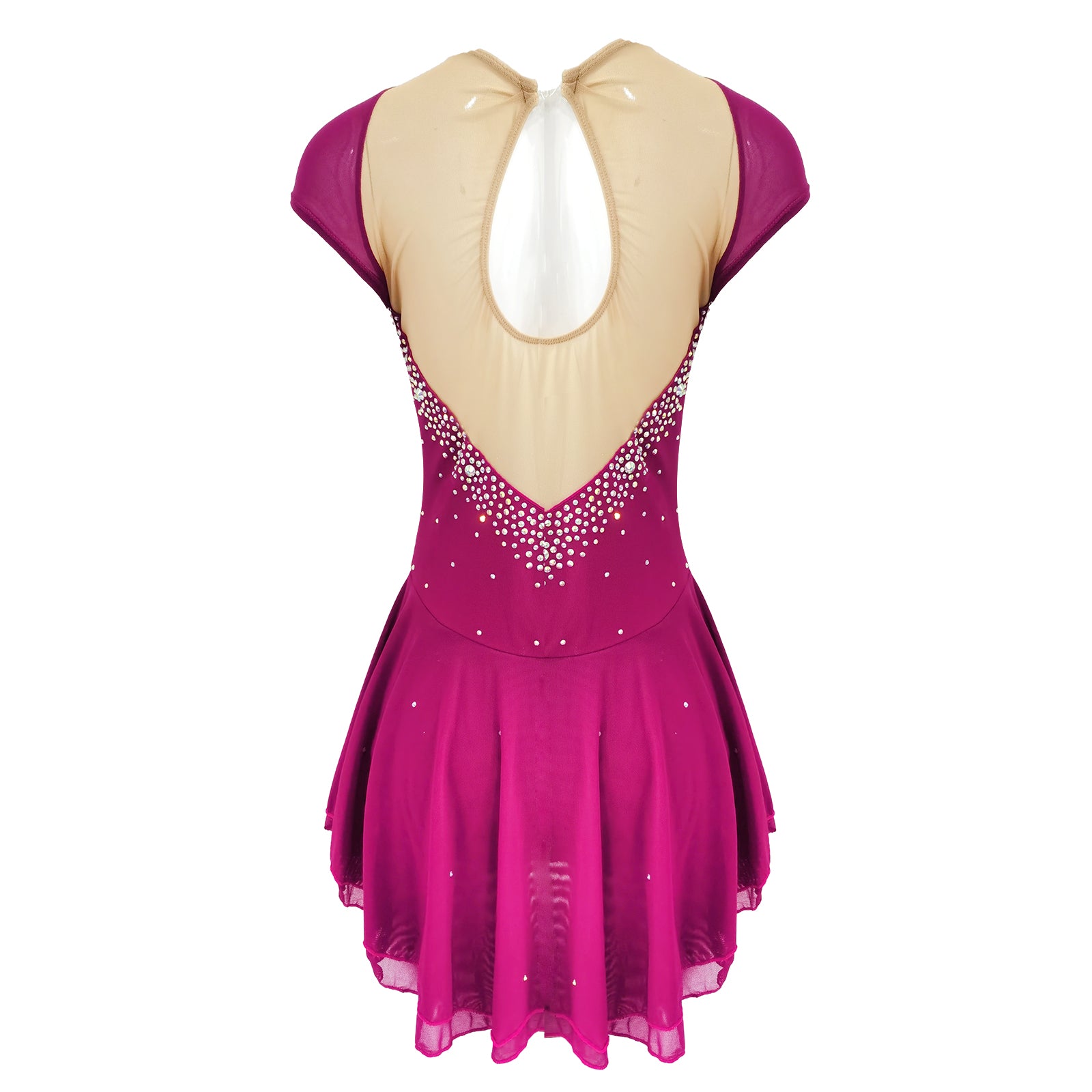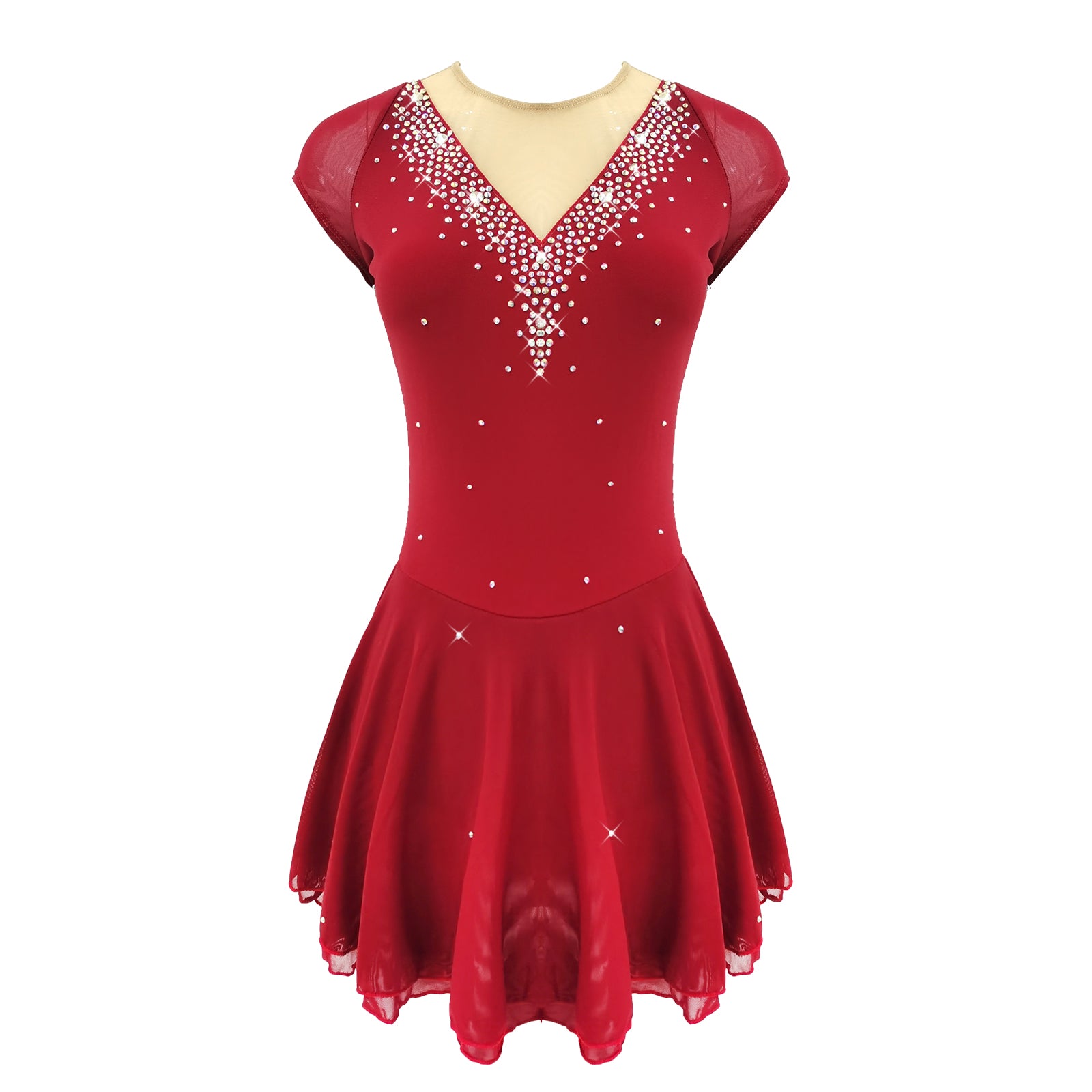 ❤ Features:This LIUHUO figure - skating dress is a short - sleeved, vibrant red style. It has a V - neckline adorned with sparkling rhinestones, and the dress is scattered with small rhinestones. The flared skirt adds elegance, perfect for women and girls in skating performances.