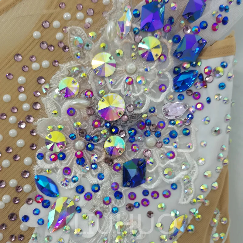 The dress was made by high quality spandex,with plenty of diamonds and  gem of acrylic. Mostly we sell the dress with crystals of  the Middle East.