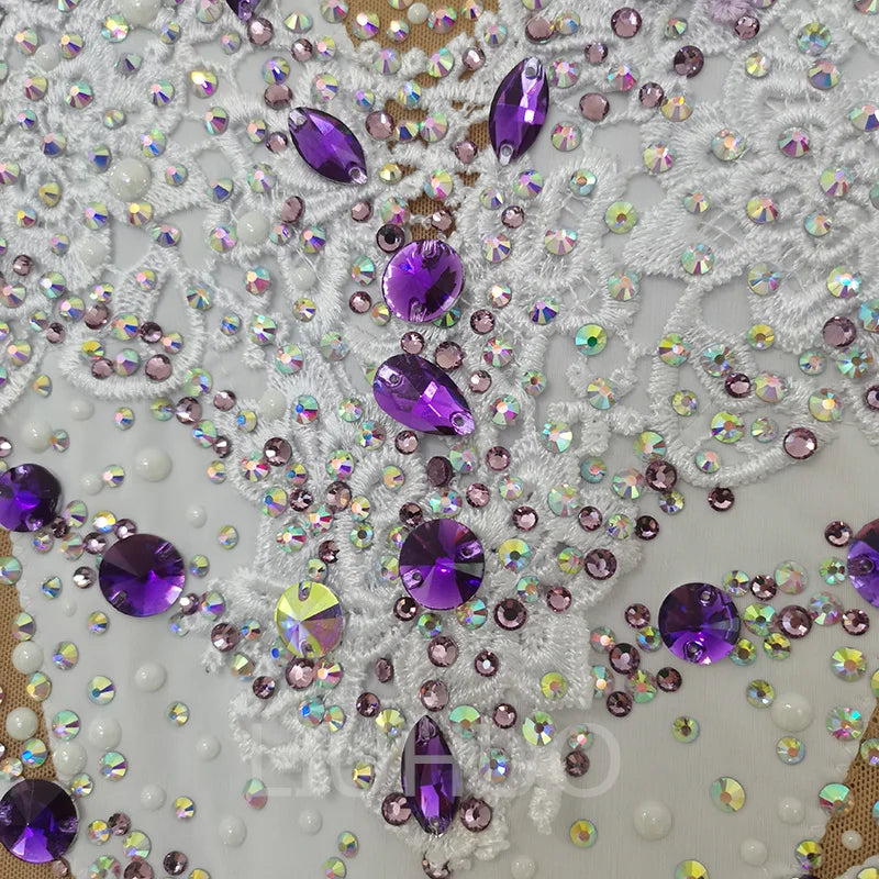 The dress was made by high quality spandex,with plenty of diamonds and  gem of acrylic. Mostly we sell the dress with crystals of  the Middle East.