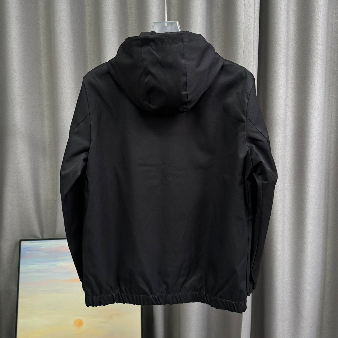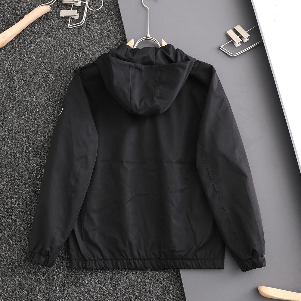 Simple and comfortable sports jacket for autumn, made of polyester fabric, windproof and moisture-proof, hooded design, close-fitting neck protection, hooded drawstring, windproof and cold-proof.