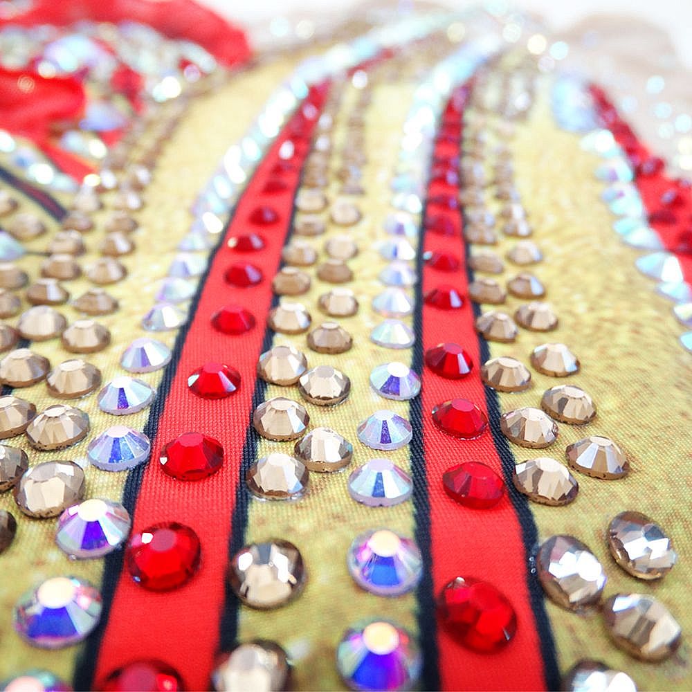 The dress was made by high quality spandex,with plenty of diamonds and  gem of acrylic. Mostly we sell the dress with crystals of  the Middle East.