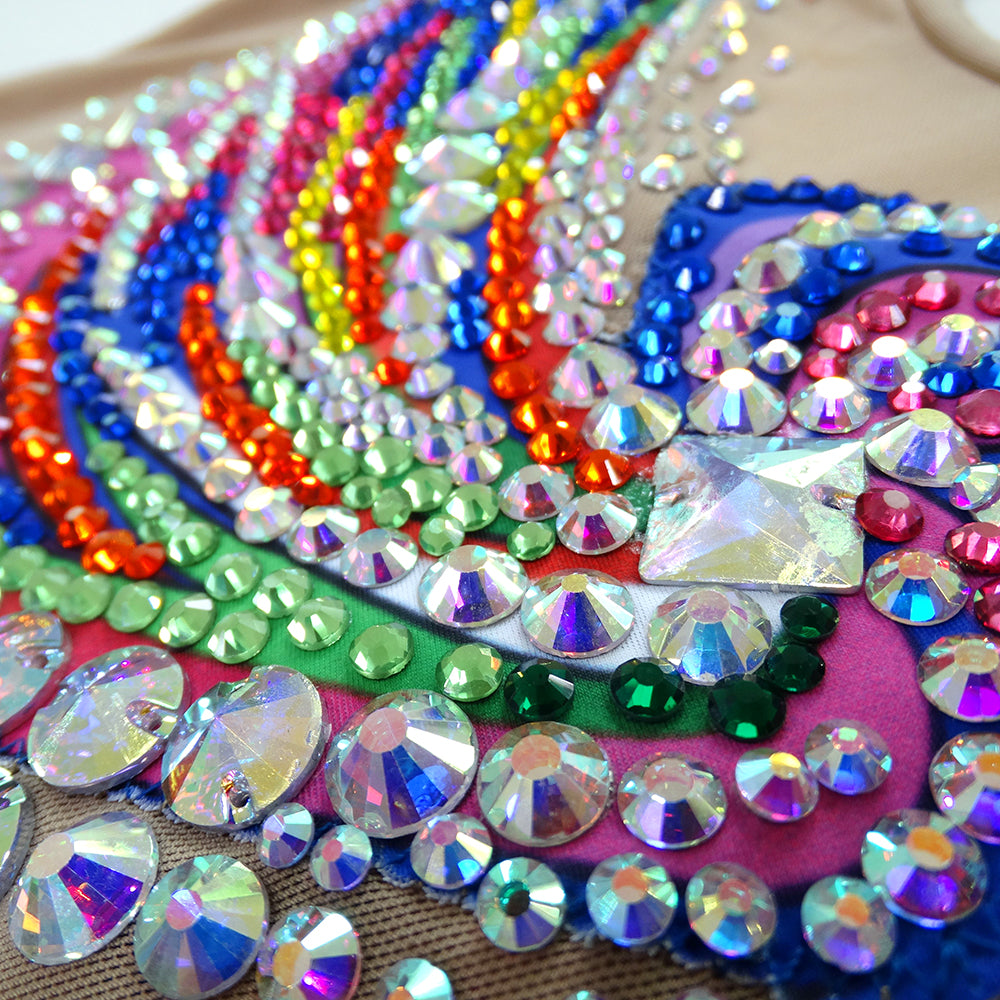 The dress was made by high quality spandex,with plenty of diamonds and gem of acrylic. Mostly we sell the dress with crystals of the Middle East.